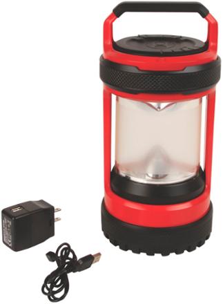 Coleman lithium ion rechargeable led rugged lantern. Rugged rechargeable 400l led lantern. The lithium ion powered coleman rugged lantern is built to go the distance with the lithium battery allowing an extra long run time and extended battery life. Usb compatible and with a bright 300 lumen output stay out of the dark and connected for longer. The integrated lithium ion battery charges from any home outlet so you ll never have to worry about fresh batteries.
