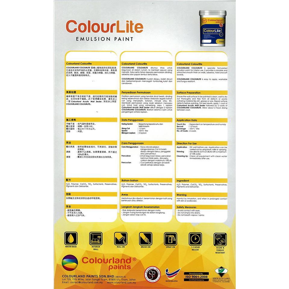 Colourland vinyl silk fresh. Emulsion roller paint is based on vinyl acetate acrylic copolymer which imparts washable and high degree of durability. Colourland vinyl silk version 2 1 1 issue date. Best selling paints as number 1 paint manufacturing in malaysia we offer a large selection many variations of products. Colourland vinyl silk fresh is specially developed as low voc and low odour latex emulsion paint that provide care for the family by providing a healthy living environment.